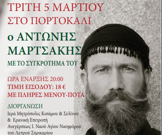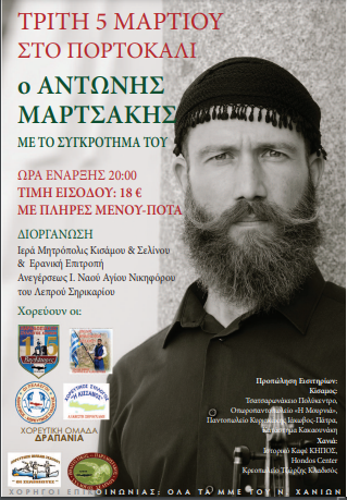 Ο εγνωσμένου κύρους τροβαδούρης της Κρητικής παράδοσης, μεγάλος Καλλιτέχνης Αντώνης Μαρτσάκης, με το συγκρότημα του, θα μας ταξιδέψει στην μουσική παράδοση της λεβεντογέννας Κρήτης.