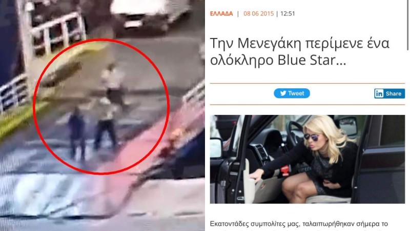 Στο τζιπ βρισκόταν η Ελένη Μενεγάκη, που σύμφωνα με τα γραφόμενα έδωσε εντολή να την περιμένει το πλοίο ώστε να μην το χάσει! Πολλοί από τους επιβάτες ενοχλήθηκαν και διαμαρτυρήθηκαν έντονα στα μέλη του πληρώματος”.