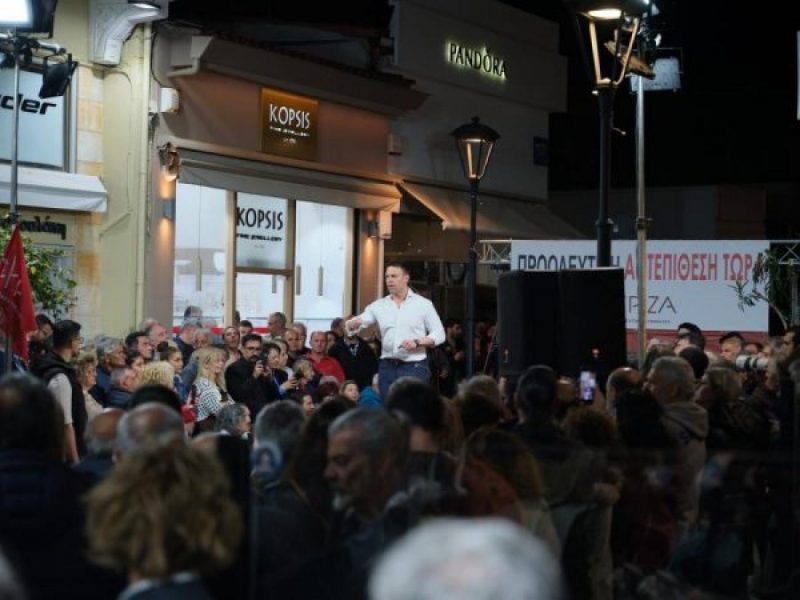 Στον πεζόδρομο της Μουσούρων στα Xανιά πραγματοποίησε ομιλία ο πρόεδρος του ΣΥΡΙΖΑ – Προοδευτική Συμμαχία Στέφανος Κασσελάκης, στο πλαίσιο της περιοδείας του στην Κρήτη.