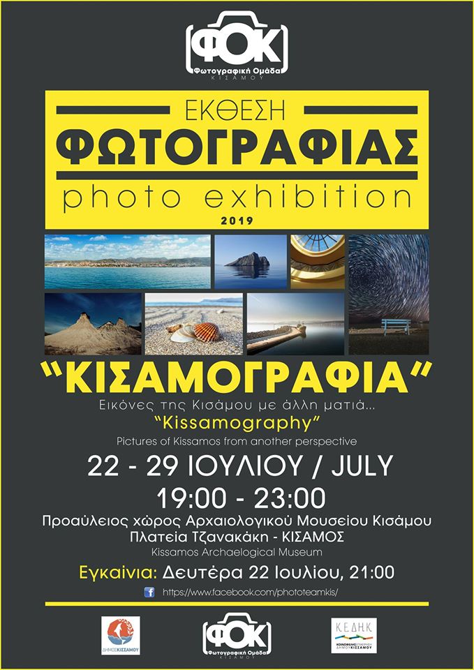 Τα εγκαίνια της έκθεσης “Κισαμογραφία” θα πραγματοποιηθούν την Δευτέρα 22 Ιουλίου 2019 και ώρα 21:00μμ