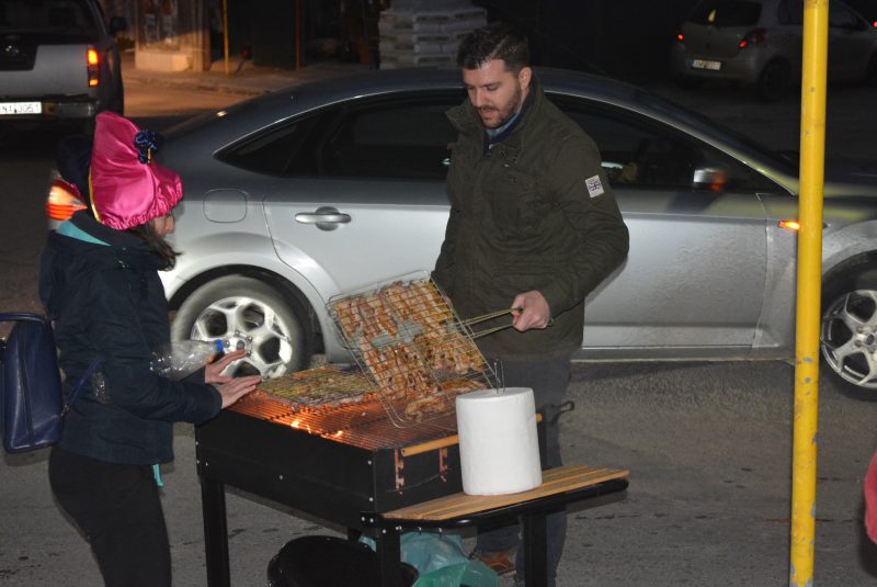 Δύο κινητές ψησταριές τσίκνισαν την πόλη, μέσω των οδών Σκαλίδη και Ηρώων Πολυτεχνείου και με επίκεντρο την πλατεία Ελευθερίου Βενιζέλου. Αρκετός κόσμος συμμετείχε σ’ αυτή την γιορτή, ο οποίος αφενός διασκέδασε, αφετέρου γεύτηκε τα εδέσματα που απαιτούσε η μέρα.
