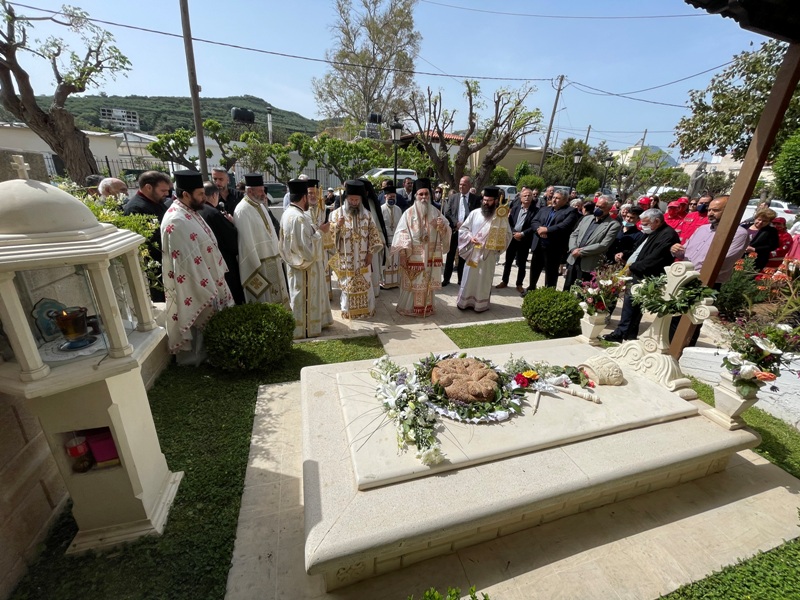 Η κατάθεση ψυχής αυτή συγκίνησε, ιδιαίτερα το πολυπληθές εκκλησίασμα ως και τους μετέχοντες Κληρικούς. Αναφέρθηκε, ακολούθως, με λόγους μεστούς και ζωηρούς, στην εορτή του Πάσχα, «την καλή απολογία του Θωμά», δίδοντας μηνύματα ελπίδας και αναστάσιμης χαράς. Στο τέλος της Θείας Λειτουργίας τελέστηκε επιμνημόσυνη δέηση και Τρισάγιο επί του τάφου του αοιδίμου Μητροπολίτου κυρού Ειρηναίου, ο οποίος ευρίσκεται εις τον προαύλιο χώρο του Μητροπολιτικού Ναού, με τον Σεβ. Ποιμενάρχη κ. Αμφιλόχιο να αναφέρεται στο πρόσωπο του αοιδίμου Ιεράρχου με λόγους σεβαστικούς και ευχαριστιακούς. «Ο σήμερα τιμώμενος, μεγάλος Ιεράρχης Ειρηναίος, υπήρξε πρόσωπο φωτεινό, αληθινό, αυθεντικό, λιτανεύοντας καθ΄ όλη την διάρκεια της ευκλεούς και πολυδένδρου Ποιμαντορίας του την Αναστάσιμη χαρά και ελπίδα. Αιωνία η ευγνωμοσύνη μας», κατέληξε. Μετείχαν ο Αντιπεριφερειάρχης Χανίων κ. Νίκος Καλογερής, οι Δήμαρχοι Κισάμου κ.Γ.Μυλωνάκης, Πλατανιά κ. Ι. Μαλανδράκης, ο Βουλευτής Χανίων κ. Β. Διγαλάκης, Αντιδήμαρχοι, Περιφερειακοί, Δημοτικοί Σύμβουλοι, ο Πρόεδρος του ΟΑΚ κ. Λ. Κοπάσης, εκπρόσωποι Στρατού, Αστυνομίας, Αρχών, Φορέων, Συλλόγων, συγγενείς του μακαριστού Ιεράρχου και πλήθος κόσμου.