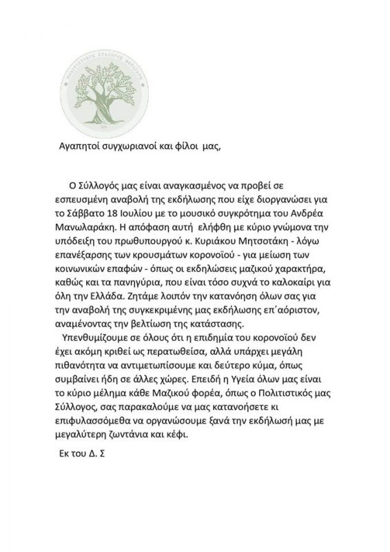 Δήμος Κισάμου Κίσαμος: Ακυρώνεται η εκδήλωση με τον Ανδρέα Μανωλαράκη 13 Ιουλίου 2020 21:25 Μοιραστείτε αυτό! Facebook Twitter Google Plus Pinterest LinkedIn Όπως ανακοίνωσε ο Πολιτιστικός Σύλλογος Βουλγάρω, ΑΚΥΡΩΝΕΤΑΙ η εκδήλωση με τον Ανδρέα Μανωλαράκη που είχε προγραμματιστεί για τις 18 Ιουλίου, καθώς -ως γνωστόν- ακυρώνονται όλες οι εκδηλώσεις που είχαν προγραμματιστεί μέχρι το τέλος Ιουλίου. μπορεί να σου αρέσει επίσης Νομός Χανίων Στα ύψη η βροχόπτωση στα Χανιά από την κακοκαιρία Byron – Πού σημειώθηκαν τα μεγαλύτερα ποσά νερού 5 Δεκεμβρίου 2025 ΔΙΕΘΝΗ • ΚΡΗΤΗ Ποια πόλη της Κρήτης βρίσκεται ανάμεσα στις 20 πιο βρώμικες του κόσμου; 5 Δεκεμβρίου 2025 ΑΓΡΟΤΙΚΑ • ΚΡΗΤΗ Σταύρος Αρναουτάκης: «Η Κρήτη μεγάλη χαμένη της νέας ΚΑΠ. Αναγκαίος ο άμεσος εξορθολογισμός των πόρων» 5 Δεκεμβρίου 2025 ΑΝΕΝ: Οι μικρομέτοχοι ψάχνουν να βρουν που πήγαν τα λεφτά τους, το καράβι, οι μετοχές τους Κίσαμος: Σχολεία και… γύψος στο δημοτικό συμβούλιο της Παρασκευής Μοιραστείτε αυτό! Facebook Twitter Google Plus Pinterest LinkedIn ΡΟΗ ΕΙΔΗΣΕΩΝ Νομός Χανίων Στα ύψη η βροχόπτωση στα Χανιά από την κακοκαιρία Byron – Πού σημειώθηκαν τα μεγαλύτερα ποσά νερού 5 Δεκεμβρίου 2025 21:54 ΔΙΕΘΝΗ • ΚΡΗΤΗ Ποια πόλη της Κρήτης βρίσκεται ανάμεσα στις 20 πιο βρώμικες του κόσμου; 5 Δεκεμβρίου 2025 21:49 ΑΓΡΟΤΙΚΑ • ΚΡΗΤΗ Σταύρος Αρναουτάκης: «Η Κρήτη μεγάλη χαμένη της νέας ΚΑΠ. Αναγκαίος ο άμεσος εξορθολογισμός των πόρων» 5 Δεκεμβρίου 2025 18:39 ΕΛΛΑΔΑ • ΕΝΔΙΑΦΕΡΟΝΤΑ Social Media: Πού κάνουν «like» οι Έλληνες; 5 Δεκεμβρίου 2025 18:37 ΚΡΗΤΗ Ώρα για μπριτζ! Οι καλύτεροι αθλητές όλης της Ελλάδας δίνουν ραντεβού στην Κρήτη! 5 Δεκεμβρίου 2025 18:35 ΕΛΛΑΔΑ • ΠΟΛΙΤΙΚΗ Δίκη Βαλυράκη: «Τον χτύπησαν με κοντάρι και τον άφησαν στη θάλασσα», κατέθεσε αυτόπτης μάρτυρας 5 Δεκεμβρίου 2025 18:28 ΠΟΛΙΤΙΚΗ Πολάκης για την παρουσίαση του βιβλίου Τσίπρα: «Έχω υψοφοβία από τα θεωρεία» 5 Δεκεμβρίου 2025 17:16 ΚΡΗΤΗ • ΤΟΥΡΙΣΜΟΣ Κρήτη: Θεαματικές οι προκρατήσεις αλλά κρατούν “μικρό καλάθι” οι τουριστικοί φορείς 5 Δεκεμβρίου 2025 17:13 Δήμος Κισάμου • ΠΑΙΔΕΙΑ - ΕΚΠΑΙΔΕΥΣΗ Κίσαμος: Διαδραστικό εργαστήριο «Ζογκλερικά Αλλιώς» με τον Circus Camino στην Ποταμίδα 5 Δεκεμβρίου 2025 14:19 ΕΛΛΑΔΑ • ΚΡΗΤΗ Νέο Έκτακτο Δελτίο Επιδείνωσης Καιρού – Η εικόνα στην Κρήτη 5 Δεκεμβρίου 2025 13:16 Νομός Χανίων Χανιά: Η Δημοτική Βιβλιοθήκη εκπροσώπησε την Ελλάδα στο διεθνές πρόγραμμα «Βιώσιμες Βιβλιοθήκες» του Goethe-Institut στη Βαρσοβία 5 Δεκεμβρίου 2025 13:10 Νομός Χανίων Χανιά: Χωρίς προβλήματα η κακοκαιρία Byron – Προειδοποίηση για νέα επιδείνωση 5 Δεκεμβρίου 2025 13:09 ΕΛΛΑΔΑ ΓΣEE: Τι ισχύει για τους εργαζόμενους σε συνθήκες κακοκαιρίας 5 Δεκεμβρίου 2025 12:57 ΕΛΛΑΔΑ • ΟΙΚΟΝΟΜΙΑ ΕΛΣΤΑΤ: Στο 2% η ανάπτυξη της ελληνικής οικονομίας κατά το τρίτο τρίμηνο του έτους 5 Δεκεμβρίου 2025 12:43 ΕΛΛΑΔΑ • ΟΙΚΟΝΟΜΙΑ Aνακήρυξη της Πειραιώς ως η «Καλύτερη Τράπεζα στην Ελλάδα» στα Bank of the Year Awards 2025 5 Δεκεμβρίου 2025 12:35 Δημοφιλή αυτή την εβδομάδα