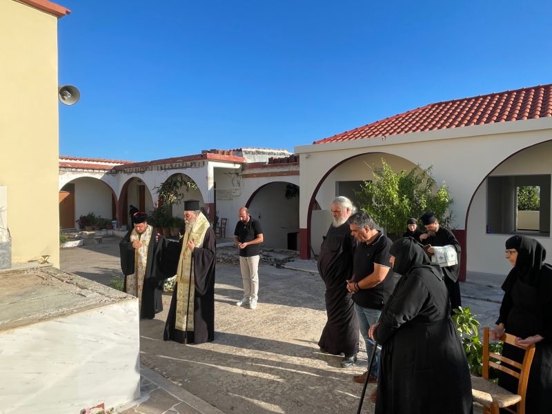 Προ της ενάρξεως των εργασιών τελέστηκε Θεία Λειτουργία και ακολούθως ο Σεβ. Μητροπολίτης Κισάμου και Σελίνου κ. Αμφιλόχιος προέβει εις την ανάχωση των αοιδίμων προκατόχων του, οι οποίοι είχαν ενταφιαστεί πέριξ του Ναού, μακαριστών Μητροπολιτών: Ανθίμου Λελεδάκη (πρώτου κτήτορος της Μονής, 1903-1935), Χρυσοστόμου Αγγελιδάκη (1936-1937) και Ευδοκίμου Συγγελάκη (1938-1956), τελώντας Τρισάγια επί των τάφων των.