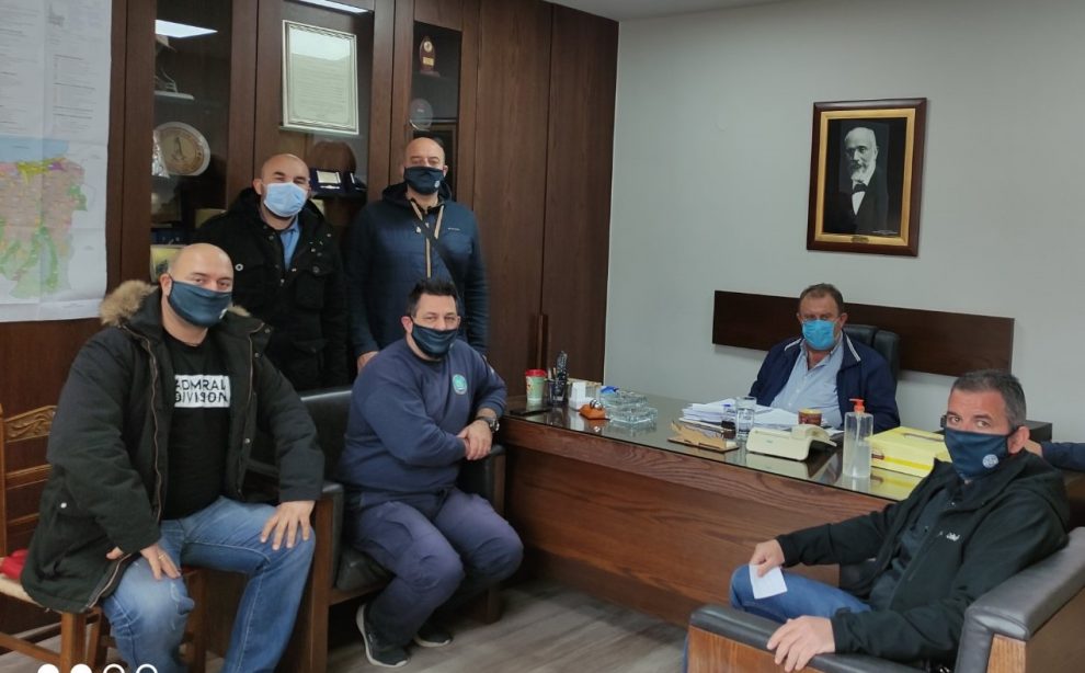 Χθες, Πέμπτη 25/2/2021, επισκέφτηκε τον Δήμαρχο Γιώργο Μυλωνάκη, ο Πρόεδρος Βασίλης Κατσικανδαράκης και μέλη του Δ.Σ. της Ένωσης Προσωπικού Λιμενικού Σώματος Δυτικής Κρήτης, στα πλαίσια συναντήσεων που είχε με συναδέρφους τους στην Κίσαμο για τα τρέχοντα θέματα που τους απασχολούν. Η συζήτηση έγινε παρουσία του προϊσταμένου του Λιμενικού Σταθμού Κισάμου κ. Παναγιώτη Νικολόπουλο και Αντιδημάρχων του Δήμου μας.