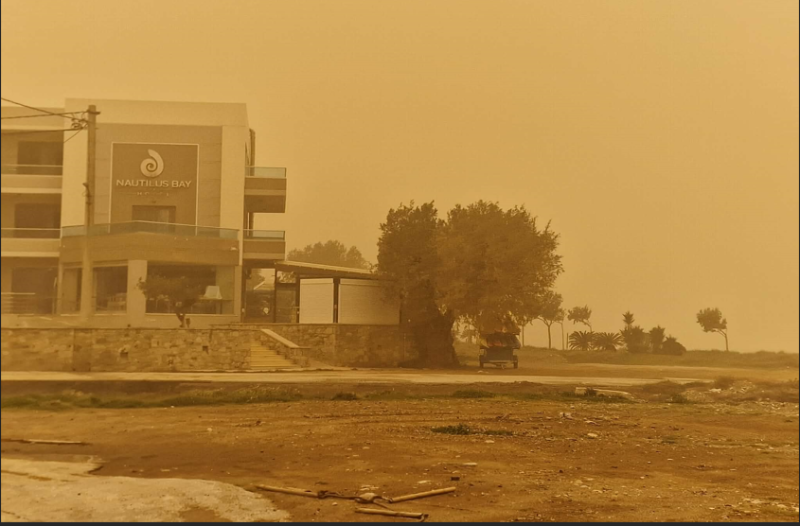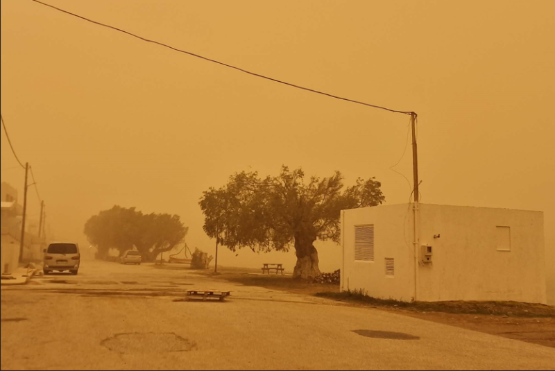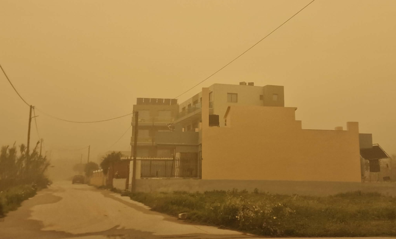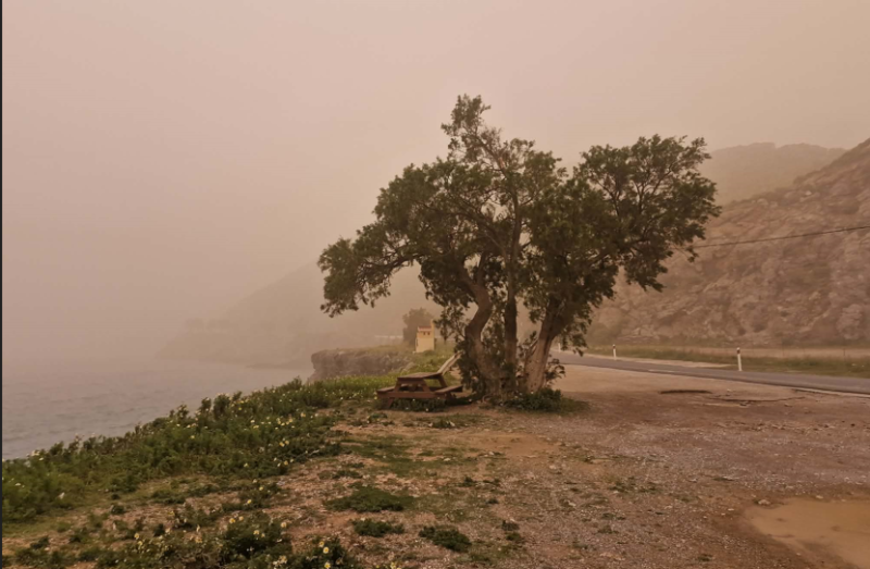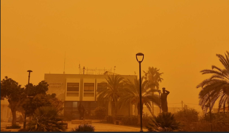 Ένα κύμα αφρικανικής σκόνης κάλυψε την Κρήτη χθες Τετάρτη, μετατρέποντας το νησί σε πορτοκαλί, απόκοσμο τοπίο.