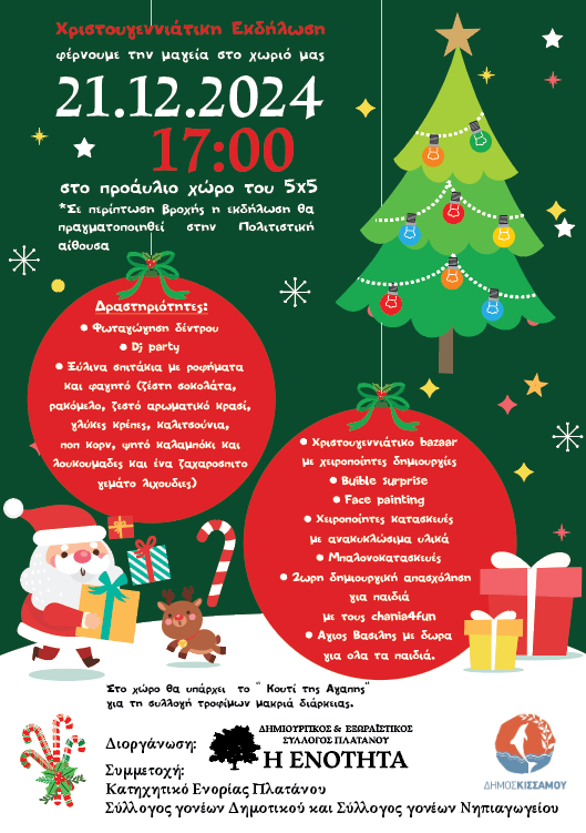 Κίσαμος: Χριστουγεννιάτικες εκδηλώσεις το Σάββατο στον Πλάτανο