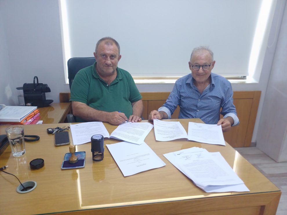 Στην υπογραφή της Προγραμματικής Σύμβασης για την υλοποίηση του έργου: «Εγκατάσταση συστήματος τηλεμετρίας & Ελέγχου διαρροών για την εξασφάλιση επαρκούς ποσότητας ύδατος και την εξοικονόμηση ενέργειας στο δίκτυο ύδρευσης ∆ήµου Κισάµου,» προχώρησε ο Δήμαρχος Κισάμου, κ. Γεώργιος Μυλωνάκης με τον Πρόεδρο Δ.Σ. της Δημοτικής Επιχείρησης Ύδρευσης Αποχέτευσης Βορείου Άξονα (Δ.Ε.Υ.Α.Β.Α.), κ. Ευτύχη Μαυρογένη .