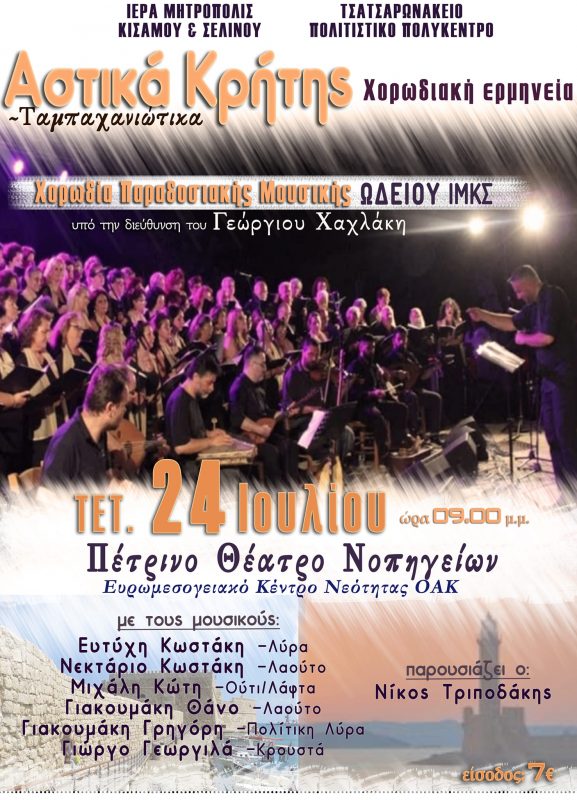 Αστικά τραγούδια Κρήτης από την Χορωδία παραδοσιακής μουσικής του Ωδείου της Ιεράς Μητρόπολης Κισάμου & Σελίνου.