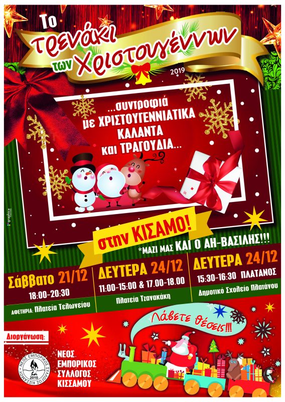 Στους δρόμους του Καστελλιού και του Πλατάνου θα βρεθεί το τρενάκι των Χριστουγέννων, με τον Άγιο Βασίλη, συνοδεία χριστουγεννιάτικων τραγουδιών, στις 21 και 24 Δεκεμβρίου.