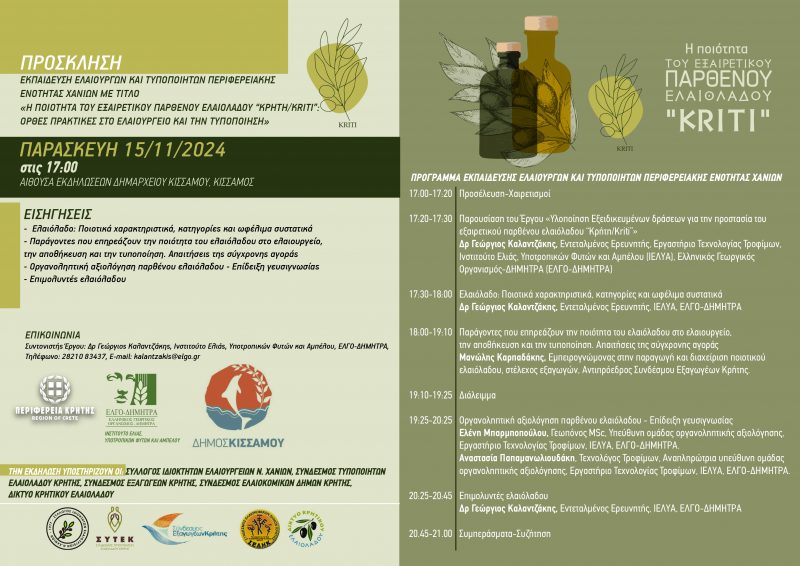 Κίσαμος: Εσπερίδα για ελαιουργούς – τυποποιητές την Παρασκευή