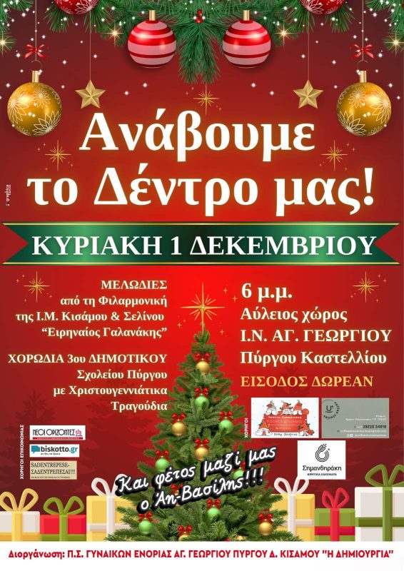 Κίσαμος: Φωταγώγηση Χριστουγεννιάτικου δέντρου στον Πύργο