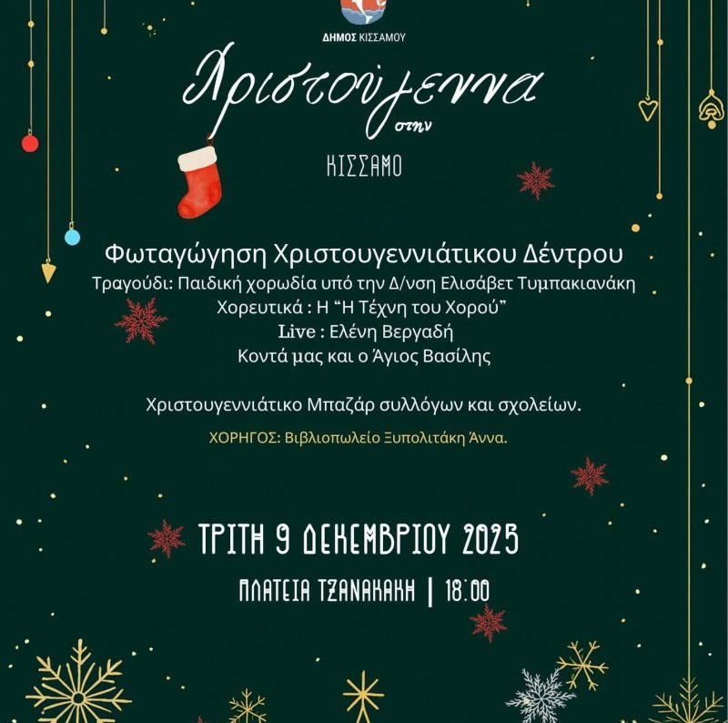 Κίσαμος: Φωταγώγηση του χριστουγεννιάτικου δέντρου στην πλατεία Τζανακάκη