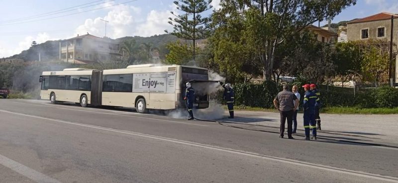 Λεωφορείο του ΚΤΕΛ Χανίων – Ρεθύμνης, που εκτελούσε το δρομολόγιο Χανιά – Κίσαμος έπιασε φωτιά λίγο πριν τις 12 το μεσημέρι της Δευτέρας στο Μελισσουργειό Κισάμου.