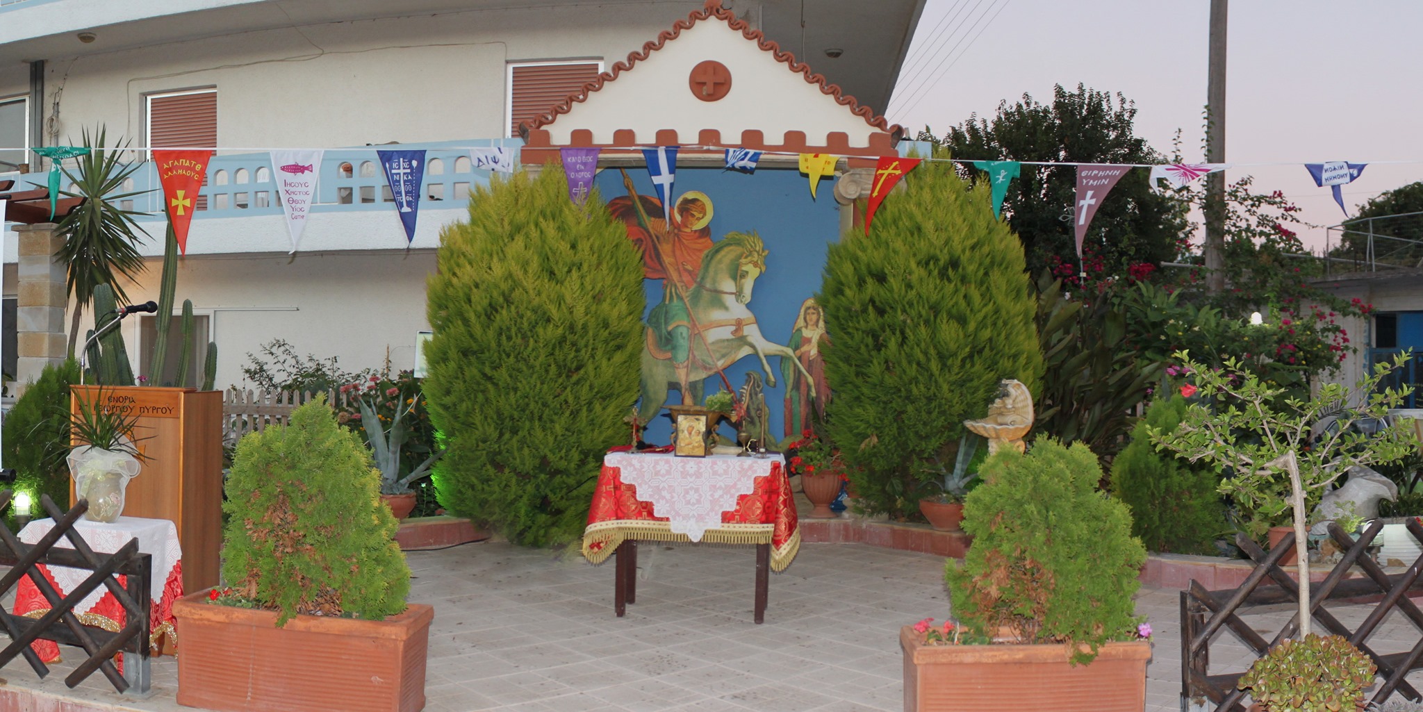 Την παραμονή της εορτής (Τετάρτη 22 Απρίλιου) στον ομώνυμο καθεδρικό Ναό της Ενορίας Πύργου θα τελέσουμε Μέγα Εσπερινό στις 6.30 μ.μ. και ανήμερα της εορτής (Πέμπτη 23 Απριλίου) από 7.30 έως και 10.30 π.μ. θα τελεστεί Όρθρος και Πανηγυρική Θεία Λειτουργία