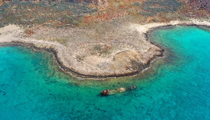 Ένα από τα πιο χαρακτηριστικά και εντυπωσιακά σημεία του νομού Χανίων, αλλά και της Κρήτης γενικότερα, συναντάται στο βορειοδυτικό τμήμα των ακτών του νομού. Εκεί μέσα στα γαλαζοπράσινα νερά της θάλασσας -τόσο καθαρά και κρυστάλλινα που μοιάζουν στην κυριολεξία με πισίνας- βρίσκεται βυθισμένο εδώ και δεκαετίες το κουφάρι ενός ναυαγίου, που έχει γίνει, σχεδόν, συνώνυμο με τη Γραμβούσα. Η ιστορία του κρατά το ενδιαφέρον αμείωτο, ενώ οι εικόνες που αντικρίζει ο επισκέπτης της περιοχής σίγουρα προκαλούν δέος και θαυμασμό.