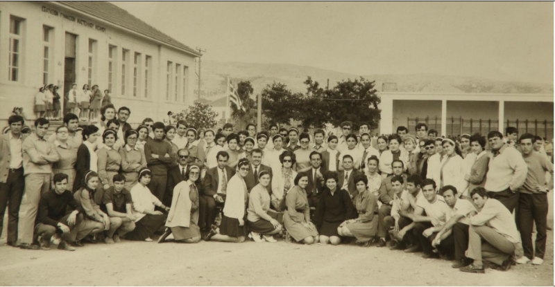 Γυμνάσιο Καστελλίου – Ιούνιος 1971: Ομαδική φωτογραφία εκπαιδευτικών και μαθητών κατά την αποφοίτηση της ΣΤ’ Τάξης.