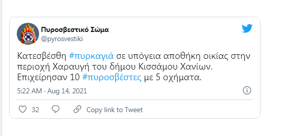 Συναγερμός σήμανε τη νύχτα στην Πυροσβεστική Υπηρεσία Υπηρεσία εξαιτίας πυρκαγιάς που εκδηλώθηκε σε υπόγεια αποθήκη, στην περιοχή Χαραυγή του δήμου Κισάμου.
