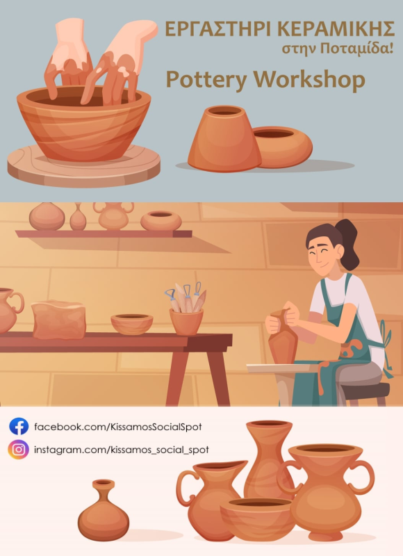 Από τον Μάρτιο ξεκινούν μαθήματα κεραμικής για ενήλικες, που θα πραγματοποιούνται κάθε Τετάρτη (5.30 – 7.30 μ.μ.), σε πλήρως εξοπλισμένο εργαστήριο κεραμικής που φιλοξενείται στην αίθουσα του Πολιτιστικού Συλλόγου Ποταμίδας.