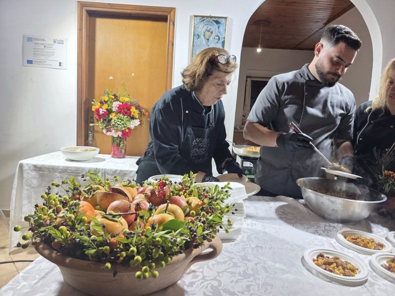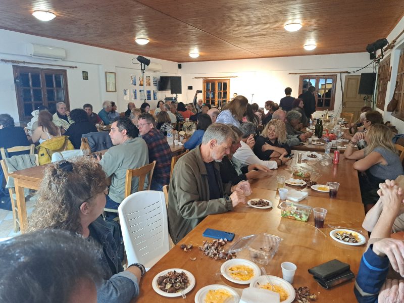 Η σημερινή εκδήλωση περιλάμβανε δημιουργικές συνταγές με κάστανα. Παρουσίαση: Γιάννης Κουφός (Σεφ), με ομάδα μαγείρων, αλλά και έντεχνη – λαϊκή βραδιά με το μουσικό σχήμα της Θεανώς Χαιρετάκη.