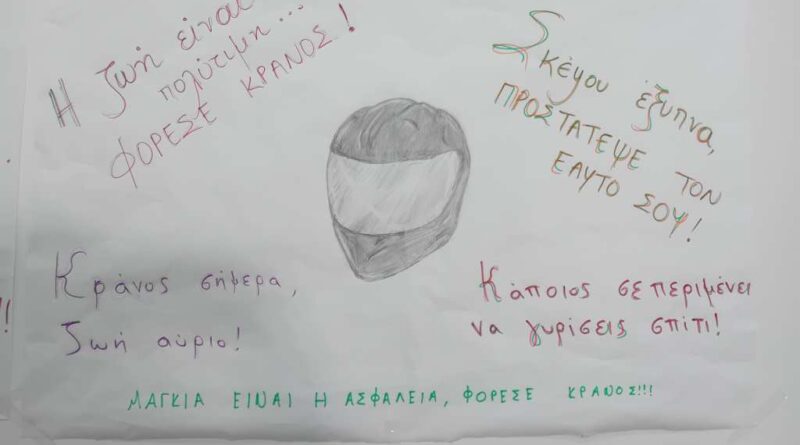 Σε συνεργασία με τους διευθυντές των σχολείων, τους συλλόγους γονέων και την πολύτιμη αρωγή της τοπικής κοινωνίας, συγκεντρώσαμε χρήματα και αγοράσαμε δέκα (10) κράνη μοτοσυκλέτας (full face) υψηλής ασφάλειας, με σκοπό να γίνουν δωρεά κατόπιν κλήρωσης στους μαθητές των δύο σχολείων.