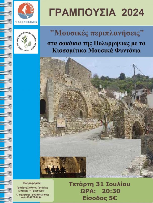 Γεύση - Ψυχαγωγία • Δήμος Κισάμου • ΠΟΛΙΤΙΣΜΟΣ Κίσαμος: «Μουσικές Περιπλανήσεις στην Πολυρρήνεια» σήμερα Τετάρτη 31 Ιουλίου 2024 09:18 Μοιραστείτε αυτό! Facebook Twitter Google Plus Pinterest LinkedIn «Μουσικές Περιπλανήσεις στην Πολυρρήνεια» με τα «μουσικά φυντάνια» της Κισάμου, σήμερα Τετάρτη 31 Ιουλίου (8 μ.μ.), υπό τη διοργάνωση του Συλλόγου Προβολής Κισάμου «Η Γραμπούσα». Διοργάνωση: Δήμος Κισάμου. Είσοδος: 5 ευρώ. μπορεί να σου αρέσει επίσης ΑΓΡΟΤΙΚΑ • ΕΛΛΑΔΑ Δόθηκε στη δημοσιότητα η επίσημη λίστα με τα αιτήματα των αγροτών – Τι ζητούν από την κυβέρνηση 15 Δεκεμβρίου 2025 Γεύση - Ψυχαγωγία Τα Ζώδια της ημέρας 15 Δεκεμβρίου 2025 ΟΙΚΟΝΟΜΙΑ Δώρο Χριστουγέννων: Τι προβλέπεται για την καταβολή του – Εντατικοποιούνται οι έλεγχοι από την Επιθεώρηση Εργασίας 15 Δεκεμβρίου 2025 Συνελήφθη από αστυνομικούς του Α.Τ. Κισάμου για κατοχή κοκαϊνης Kίσαμος: «Υπάρχουν τρόποι ωφέλιμης αξιοποίησης της δημοτικής ακίνητης περιουσίας» Μοιραστείτε αυτό! Facebook Twitter Google Plus Pinterest LinkedIn ΡΟΗ ΕΙΔΗΣΕΩΝ ΑΓΡΟΤΙΚΑ • ΕΛΛΑΔΑ Δόθηκε στη δημοσιότητα η επίσημη λίστα με τα αιτήματα των αγροτών – Τι ζητούν από την κυβέρνηση 15 Δεκεμβρίου 2025 09:42 Γεύση - Ψυχαγωγία Τα Ζώδια της ημέρας 15 Δεκεμβρίου 2025 09:36 ΟΙΚΟΝΟΜΙΑ Δώρο Χριστουγέννων: Τι προβλέπεται για την καταβολή του – Εντατικοποιούνται οι έλεγχοι από την Επιθεώρηση Εργασίας 15 Δεκεμβρίου 2025 09:31 ΚΡΗΤΗ • Νομός Χανίων Χανιά: Άκαρπες παραμένουν οι έρευνες για τον εντοπισμό του 33χρονου γιατρού που εξαφανίστηκε – Στιγμές αγωνίας για την οικογένειά του 15 Δεκεμβρίου 2025 09:22 ΚΡΗΤΗ • Νομός Χανίων ΔΕΔΔΗΕ: Διακοπές ρεύματος σε περιοχές της Κρήτης σήμερα, Δευτέρα 15 Δεκεμβρίου 15 Δεκεμβρίου 2025 09:11 Νομός Χανίων Χανιά: Απόπειρα ληστείας με τραυματισμό σε κατάστημα αγοράς χρυσού στο κέντρο της πόλης – Έρευνες για τον εντοπισμό των δραστών 15 Δεκεμβρίου 2025 08:53 ΚΡΗΤΗ Κρήτη: Ο καιρός της Δευτέρας 15 Δεκεμβρίου 14 Δεκεμβρίου 2025 21:07 ΑΓΡΟΤΙΚΑ • ΕΛΛΑΔΑ Τα επίσημα αιτήματα των αγροτών προς τον πρωθυπουργό -Τι ζητούν για ρεύμα, τιμές, συντάξεις, ΟΠΕΚΕΠΕ 14 Δεκεμβρίου 2025 17:48 ΑΘΛΗΤΙΚΑ Super League 2: Τα καλύτερα φετινά Χανιά επικράτησαν με 2-0 του Παναργειακού 14 Δεκεμβρίου 2025 17:08 ΑΓΡΟΤΙΚΑ • ΚΡΗΤΗ • ΝΕΟΙ ΟΡΙΖΟΝΤΕΣ ΟΠΕΚΕΠΕ: Αντιμέτωποι με έξι κακουργήματα οι συλληφθέντες από την Κρήτη 14 Δεκεμβρίου 2025 17:06 ΑΘΛΗΤΙΚΑ Ο παίκτης που αναδείχθηκε κορυφαίος δεξιός μπακ στην ιστορία του ΟΦΗ φόρεσε και τη φανέλα του Κισαμικού 14 Δεκεμβρίου 2025 13:52 Εκδρομές - Ταξίδια Αυτή είναι η φτηνότερη μέρα για κράτηση πτήσης 14 Δεκεμβρίου 2025 13:22 Γεύση - Ψυχαγωγία Τσιγαρίδες… ο τέλειος μεζές του χειμώνα – Συνταγή & συμβουλές 14 Δεκεμβρίου 2025 12:45 ΑΓΡΟΤΙΚΑ • ΝΕΟΙ ΟΡΙΖΟΝΤΕΣ Πώς μπορούν οι αγρότες να κάνουν διορθώσεις – ενστάσεις για τις επιδοτήσεις 14 Δεκεμβρίου 2025 12:08 ΚΡΗΤΗ • ΜΑΤΙΕΣ ΣΤΟ ΠΑΡΕΛΘΟΝ Κρήτη (1990): Μαύρη μέρα για το Πανεπιστήμιο Κρήτης – Η δολοφονία των δυο καθηγητών ενώ δίδασκαν (ΒΙΝΤΕΟ) 14 Δεκεμβρίου 2025 09:38 Δημοφιλή αυτή την εβδομάδα