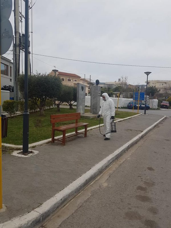 Συγκεκριμένα, έγινε ψεκασμός με ειδικά απολυμαντικά εγκεκριμένα από τον ΕΟΦ και σύμφωνα με τις οδηγίες του ΕΟΔΥ, σε όλες τις πλατείες, στους κοινόχρηστους και πολυσύχναστους χώρους κατά μήκος της πόλης (Κέντρο Υγείας, Δημαρχείο, Μητρόπολη, Αστυνομικό Τμήμα, Πυροσβεστική, παιδικές χαρές, κατά μήκος αγοράς-οδού Σκαλίδη, σε εξωτερικούς χώρους ιατρείων, φαρμακείων, τραπεζών, σούπερ μάρκετ, περιπτέρων κ.ά.).