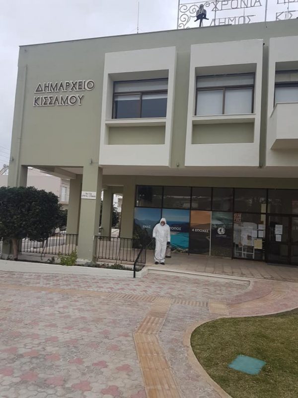 Ο Δήμος Κισάμου προχώρησε σήμερα Κυριακή 22/3/2020 σε απολύμανση για τον COVID-19 στις πλατείες και εξωτερικούς κοινόχρηστους χώρους μέσα στην πόλη της Κισάμου.