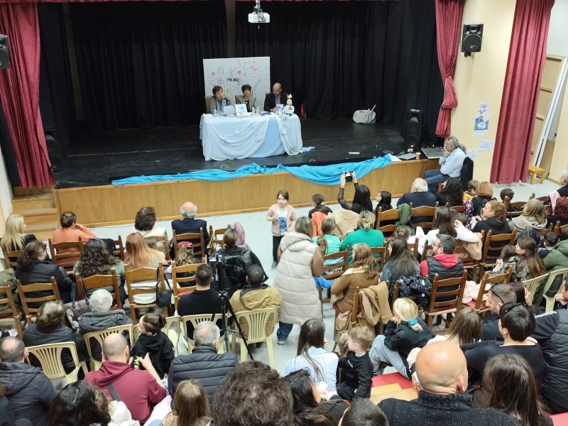Συγκίνηση προκάλεσε ο χαιρετισμός του κ. Ευτύχη Χορευτάκη, τέως σχολικού συμβούλου που επεσήμανε την σημασία της προσχολικής εκπαίδευσης στην ανάπτυξη του παιδιού. Η εκδήλωση έκλεισε μια ομάδα μικρών δημοσιογράφων του 4ου Νηπιαγωγείου που έθεσαν ερωτήσεις στη συγγραφέα.