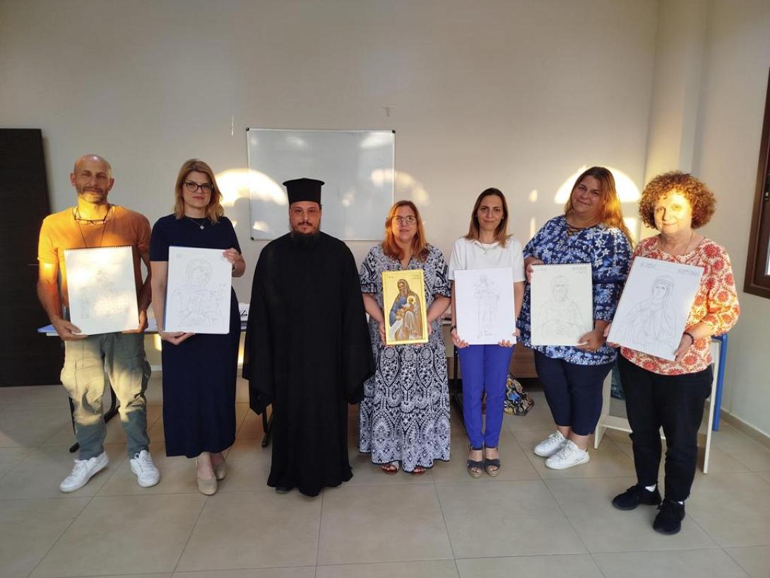 Ο φετινός κύκλος σπουδών-εκμάθησης Αγιογραφίας ολοκληρώθηκε, με επιτυχία. Στο κλείσιμο του έτους τον Σεβ. Μητροπολίτη Κισάμου κ. Αμφιλόχιο εκπροσώπησε ο Πρωτοσύγκελλος της Ιεράς Μητροπόλεως, Παν. Αρχ. π. Αγαθάγγελος, ο οποίος μετέφερε τις ευχές και την αγάπη του οικείου Επισκόπου, ως και τα ολόθυμα ευχαριστήρια του προς την διδάσκουσα της Σχολής κ. Κωνσταντίνα Στεφανάκη, έμπειρη Αγιογράφο, επιστημονική συνεργάτιδα της Ορθοδόξου Ακαδημίας Κρήτης, η οποία καθ΄ όλα αυτά τα έτη προσφέρει, με αγάπη και εθελοντικά, τις γνώσεις και την εμπειρία της στο πλήθος των μαθητών/μαθητριών που έχουν ολοκληρώσει τον τριετή κύκλο σπουδών, αρκετοί από τους οποίους συνεχίζουν να ασχολούνται με την Αγιογραφία, ευχόμενος «ένα ευλογημένο και ασφαλές θέρος», ενημερώνοντας πως η Σχολή Αγιογραφίας θα συνεχίσει την λειτουργία της και το επόμενο έτος.