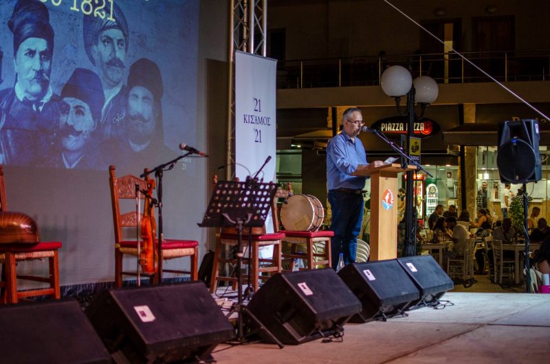 Ο Δήμος Κισάμου, στα πλαίσια των Εορτασμών της επετείου από τα 200 χρόνια από την Ελληνική Επανάσταση, σε συνδιοργάνωση με την Κοινωφελή Επιχείρηση του Δήμου Κισάμου, τον Δήμο Πλατανιά, την Περιφερειακή Ενότητα Χανίων και την Επιτροπή των εορτασμών ΧΑΝΙΑ 1821-2021 και σε συνεργασία με την Ιερά Μητρόπολη Κισάμου και Σελίνου και την Ορθόδοξο Ακαδημία Κρήτης, διοργάνωσε εκδήλωση για την παρουσίαση του βιβλίου του Αντώνη Μαρτσάκη με τίτλο “Ριζίτικα και Ρίμες του 1821”, το βράδυ της Τετάρτης 21 Ιουλίου στην Πλατεία Τζανακάκη στο Καστέλλι.