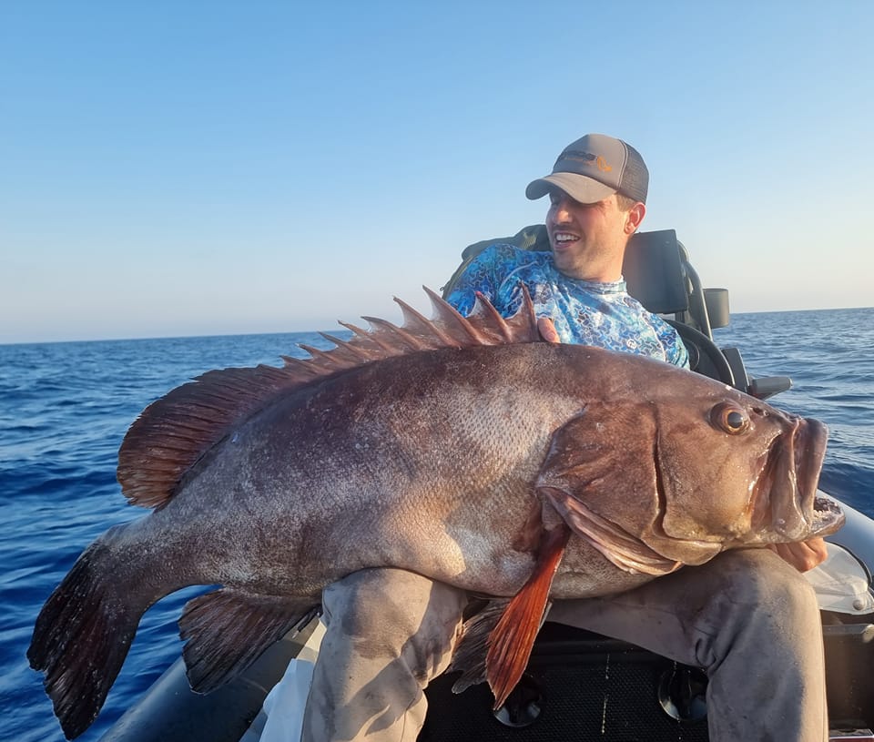 Δεν μπορώ να το φέρω καθόλου, ενώ στην πρώτη ευκαιρία καταφέρνω να του πάρω 50μ , λέω δικό μας είναι. Στο πρώτο όμως κεφάλι κι ενώ πλησίαζε πάλι στο βυθό το κράτησα τόσο όσο! Αλλα 30μ προς την επιφάνεια και το επόμενο κεφαλι παίρνει μονο 5-6μ προς τα κατω. Μετά από 15 λεπτά αγωνίας βγαίνει στην επιφάνεια ο βασιλιάς του τόπου! Απίστευτο συναίσθημα να κρατάς ένα τέτοιο ψάρι στα χέρια σου”.