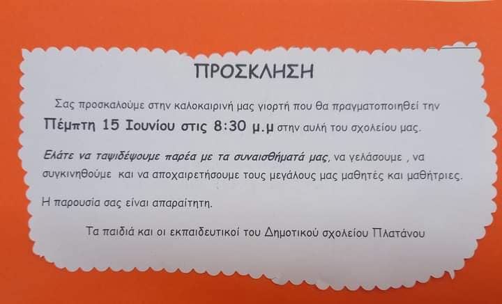 Δήμος Κισάμου Κίσαμος: Σήμερα η καλοκαιρινή εκδήλωση του Δημοτικού Σχολείου Πλατάνου 15 Ιουνίου 2023 14:12 Μοιραστείτε αυτό! Facebook Twitter Google Plus Pinterest LinkedIn Σήμερα Πέμπτη 15 Ιουνίου στις 8.30 το βράδυ θα πραγματοποιηθεί η καλοκαιρινή γιορτή του Δημοτικού Σχολείου Πλατάνου. Στην εκδήλωση, που θα πραγματοποιηθεί στο προαύλιο του σχολείου, θα σας διασκεδάσει ο Γιώργος Μυλωνάκης και το συγκρότημα του. μπορεί να σου αρέσει επίσης ΚΡΗΤΗ Μεταναστευτικό: Πόσα χρήματα έχουν πάρει Δήμοι στην Κρήτη – Τί γίνεται με τις δομές φιλοξενίας 6 Δεκεμβρίου 2025 ΚΡΗΤΗ Μετά τη σύνταξη… στην Κρήτη: Όλο και περισσότεροι Ευρωπαίοι αγοράζουν σπίτια στο νησί! 6 Δεκεμβρίου 2025 Γεύση - Ψυχαγωγία Taste Atlas: Χάσαμε την πρώτη θέση στις «100 καλύτερες κουζίνες του κόσμου» – Ποια χώρα μας πέρασε 6 Δεκεμβρίου 2025 Kίσαμος: Άνδρας έχει κλειστεί στο σπίτι του και απειλεί να το ανατινάξει Πανελλαδικές 2023: Μέχρι 23 Ιουνίου η δήλωση κινητού τηλεφώνου για τη λήψη αποτελεσμάτων μέσω sms Μοιραστείτε αυτό! Facebook Twitter Google Plus Pinterest LinkedIn ΡΟΗ ΕΙΔΗΣΕΩΝ ΚΡΗΤΗ Μεταναστευτικό: Πόσα χρήματα έχουν πάρει Δήμοι στην Κρήτη – Τί γίνεται με τις δομές φιλοξενίας 6 Δεκεμβρίου 2025 17:06 ΚΡΗΤΗ Μετά τη σύνταξη… στην Κρήτη: Όλο και περισσότεροι Ευρωπαίοι αγοράζουν σπίτια στο νησί! 6 Δεκεμβρίου 2025 17:00 Γεύση - Ψυχαγωγία Taste Atlas: Χάσαμε την πρώτη θέση στις «100 καλύτερες κουζίνες του κόσμου» – Ποια χώρα μας πέρασε 6 Δεκεμβρίου 2025 16:47 ΝΕΟΙ ΟΡΙΖΟΝΤΕΣ • Νομός Χανίων Χανιά: Έφυγε από τη ζωή μετά από θανατηφόρο δυστύχημα αθλητής σε αναπηρικό αμαξίδιο 6 Δεκεμβρίου 2025 09:58 ΕΝΔΙΑΦΕΡΟΝΤΑ Τα ζώδια του Σαββάτου 6 Δεκεμβρίου 6 Δεκεμβρίου 2025 09:41 ΝΕΟΙ ΟΡΙΖΟΝΤΕΣ • Νομός Χανίων Χανιά: Σεισμική δόνηση το βράδυ της Παρασκευής 6 Δεκεμβρίου 2025 09:34 ΕΝΔΙΑΦΕΡΟΝΤΑ Ποιος συμβολισμός κρύβεται πίσω από το «Χριστουγεννιάτικο καράβι» 6 Δεκεμβρίου 2025 07:33 ΚΡΗΤΗ Κρήτη: Ο καιρός σήμερα Σάββατο 6 Δεκεμβρίου 6 Δεκεμβρίου 2025 07:30 ΑΘΛΗΤΙΚΑ Γ’ Εθνική: Με Χαϊδάρι εκτός έδρας ο Γρανίτης – Το πρόγραμμα της αγωνιστικής 6 Δεκεμβρίου 2025 07:27 ΑΘΛΗΤΙΚΑ Super League 2: Στην Καλλιθέα τα Χανιά – Το πρόγραμμα του Σαββατοκύριακου 6 Δεκεμβρίου 2025 07:24 ΑΘΛΗΤΙΚΑ Super League: To πρόγραμμα των αγώνων του Σαββατοκύριακου 6 Δεκεμβρίου 2025 07:16 ΑΘΛΗΤΙΚΑ Τοπικό Χανίων: Οι αγώνες του Σαββατοκύριακου και στις τρεις Κατηγορίες 6 Δεκεμβρίου 2025 07:12 Γεύση - Ψυχαγωγία Συνταγή: Κοτόπιτα µε μανιτάρια (4 μερίδες) 6 Δεκεμβρίου 2025 07:03 Γεύση - Ψυχαγωγία Το ανέκδοτο τoυ Σαββάτου 6 Δεκεμβρίου 2025 07:00 ΕΝΔΙΑΦΕΡΟΝΤΑ Ποιοι γιορτάζουν σήμερα Σάββατο 6 Δεκεμβρίου 6 Δεκεμβρίου 2025 06:54 Δημοφιλή αυτή την εβδομάδα