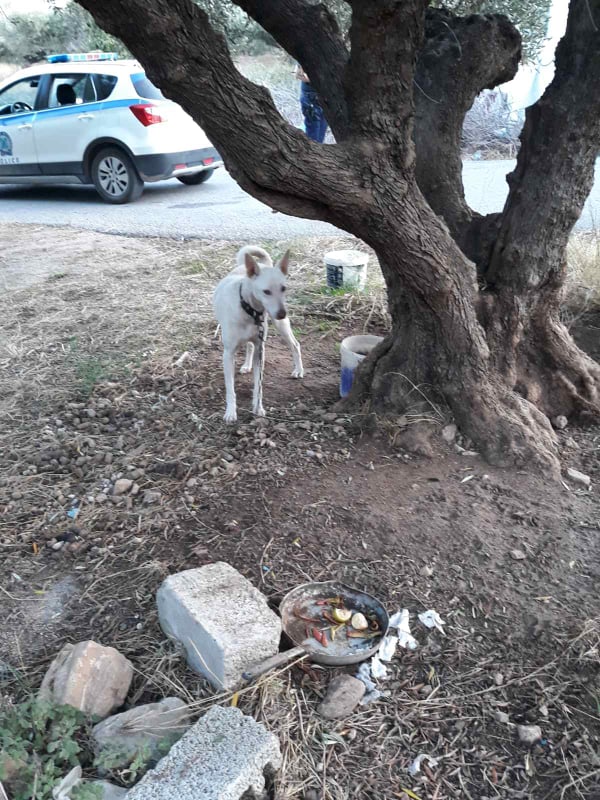 Σύμφωνα με τους καταγγέλλοντες: «Ο σκύλος-χρώματος λευκού- βρίσκεται πολύ καιρό στο σημείο χωρίς σπιτάκι δεμένο σε μία ελιά ενώ για φαγητό έχει εντόσθια και υπολείμματα ζώων. Είναι δεμένο με πολύ μικρή αλυσίδα,ενώ ο ιδιοκτήτης πηγαίνει σπάνια και μένει στο Νιο Χωριό Γραμπούσας. Ο σκύλος είναι πολύ αδύνατος,ενώ τον έχουν δει πολλές φορές να χτυπάει το σκύλο και να του φέρεται άσχημα….»