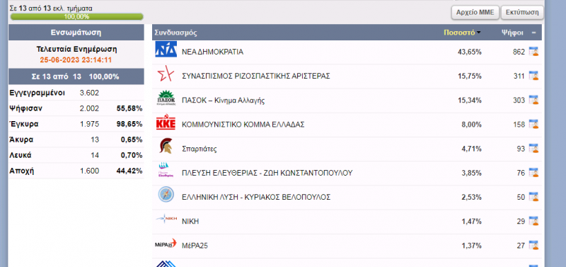Κίσαμος: Τα τελικά αποτελέσματα στην Δημοτική Ενότητα Μηθύμνης