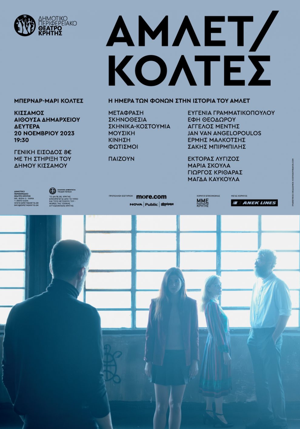 Το ΔΗΠΕΘΕ Κρήτης παρουσιάζει για πρώτη φορά στην Ελλάδα, σε σκηνοθεσία της Καλλιτεχνικής του Διευθύντριας Έφης Θεοδώρου, το έργο του διακεκριμένου γάλλου συγγραφέα Μπερνάρ-Μαρί Κολτές «Η ημέρα των φόνων στην ιστορία του Άμλετ»(Άμλετ/Κολτές). Πρόκειται για μια διασκευή του κλασικού αριστουργήματος του Σαίξπηρ, που γράφτηκε το 1974. Ο Κολτές -ένας από τους σημαντικότερους θεατρικούς συγγραφείς του 20ου αιώνα, που χάθηκε πρόωρα-, αναμετριέται με την ορμή των 26 του χρόνων με το μεγάλο κλασικό. Αποδομεί τον «Άμλετ» του και ανασυνθέτει ένα νέο έργο που αντλεί από τη σύγχρονη λογοτεχνία, τη σύγχρονη δραματουργία και τις αναζητήσεις της σύγχρονης εποχής.