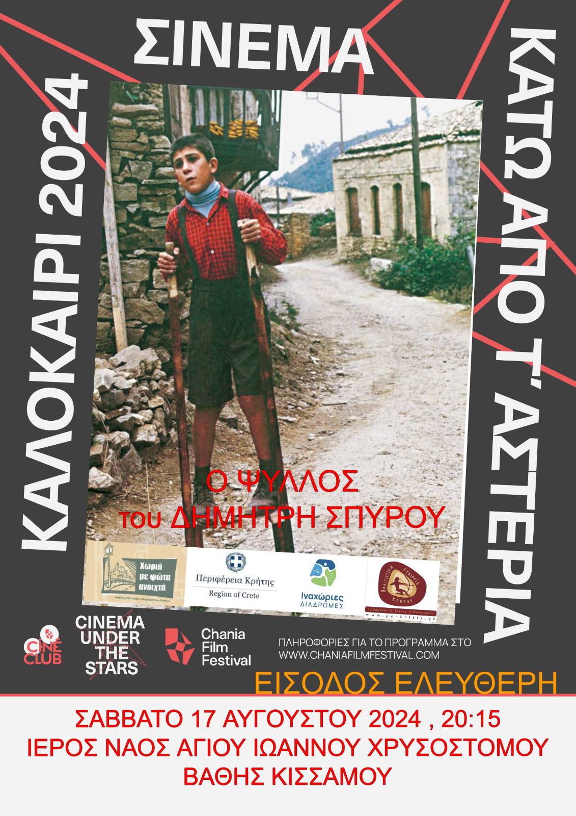 Το Σάββατο, 17 Αυγούστου, στις 20:15, σας προσκαλούμε σε μια ξεχωριστή βραδιά θερινού σινεμά στον Ιερό Ναό του Αγίου Ιωάννου του Χρυσοστόμου, στη Βάθη Κισάμου. Θα προβληθεί η βραβευμένη ελληνική ταινία “Ο Ψύλλος” του Δημήτρη Σπύρου, μια ταινία που συγκινεί και εμπνέει όλες τις γενιές.