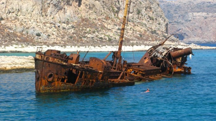 Το σκουριασμένο ναυάγιο που βρίσκεται δίπλα από το λιμάνι της Γραμπούσας στο βορειοδυτικό τμήμα του Νομού Χανίων, έχει γίνει πλέον χαρακτηριστικό στοιχείο της περιοχής και κομμάτι της ιστορίας του.