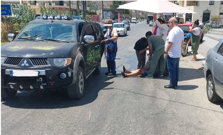 Το περιστατικό συνέβη όταν προπορευόμενο όχημα φρέναρε απότομα και ο οδηγός από μηχανάκι που ακολουθούσε, έχασε την ισορροπία του και βρέθηκε στο οδόστρωμα με αποτέλεσμα να τραυματιστεί στο κεφάλι.