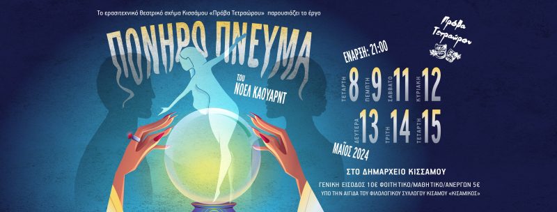 Ξεκινούν σήμερα Τετάρτη 8 Μαϊου οι παραστάσεις της κωμωδίας «Πονηρό Πνεύμα» του Νόελ Κάουαρντ που ανεβάζει τ ο ερασιτεχνικό θεατρικό σχήμα «Πρόβα Τετραώρου».