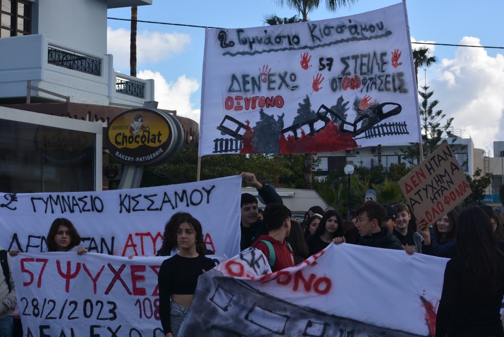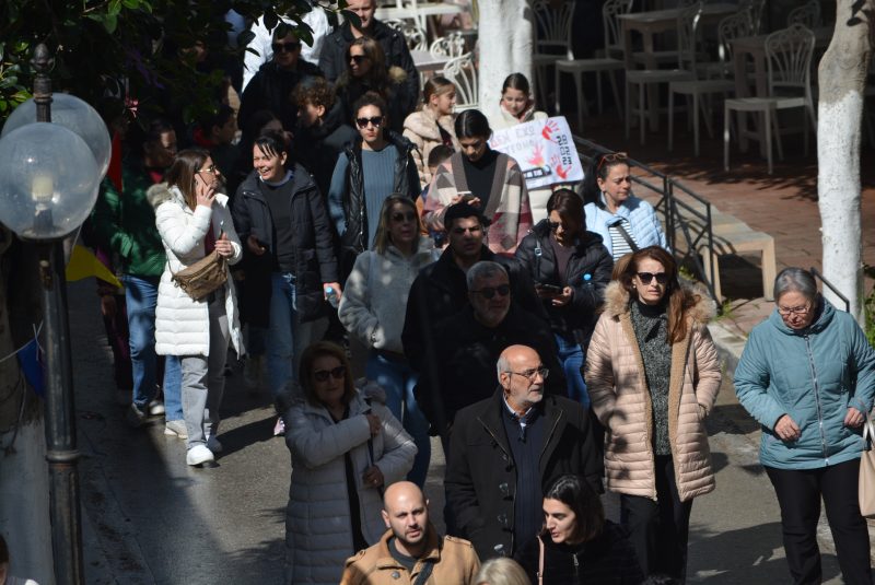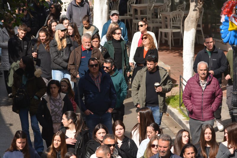 Το Καστέλλι γέμισε με φωνές και πανό σήμερα το πρωί, καθώς μαθητές, πολίτες, σύλλογοι και φορείς συγκεντρώθηκαν στο κέντρο της πόλης για να τιμήσουν τα 57 θύματα της τραγωδίας στα Τέμπη και να απαιτήσουν διαφάνεια, δικαιοσύνη και ασφάλεια.