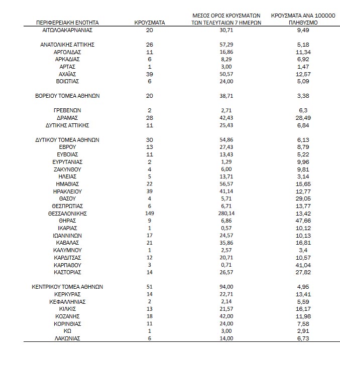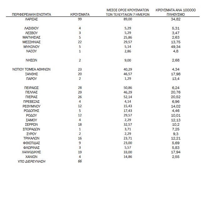 (ημερήσια μεταβολή +0.2%), εκ των οποίων 50.9% άνδρες. Με βάση τα επιβεβαιωμένα κρούσματα των τελευταίων 7 ημερών, 111 θεωρούνται σχετιζόμενα με ταξίδι από το εξωτερικό και 3.609 είναι σχετιζόμενα με ήδη γνωστό κρούσμα.