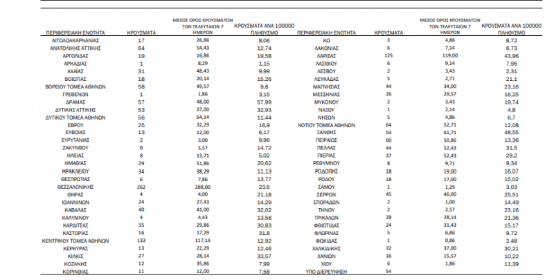 Ανησυχία προκαλεί η επιδημιολογική εικόνα της Θεσσαλονίκης, καθώς βρίσκεται σε φάση «έκρηξης» της πανδημίας, όπως δείχνουν όλα τα δεδομένα (αριθμός νέων κρουσμάτων, ιικό φορτίο λυμάτων), ενώ παράλληλα ασκείται ασφυκτική πίεση στα νοσοκομεία της περιοχής. Παρόμοια στοιχεία καταγράφονται και για άλλες περιοχές της βόρειας Ελλάδας, ενώ στην υπόλοιπη χώρα -προς το παρόν- διαπιστώνεται εικόνα σταθεροποίησης.