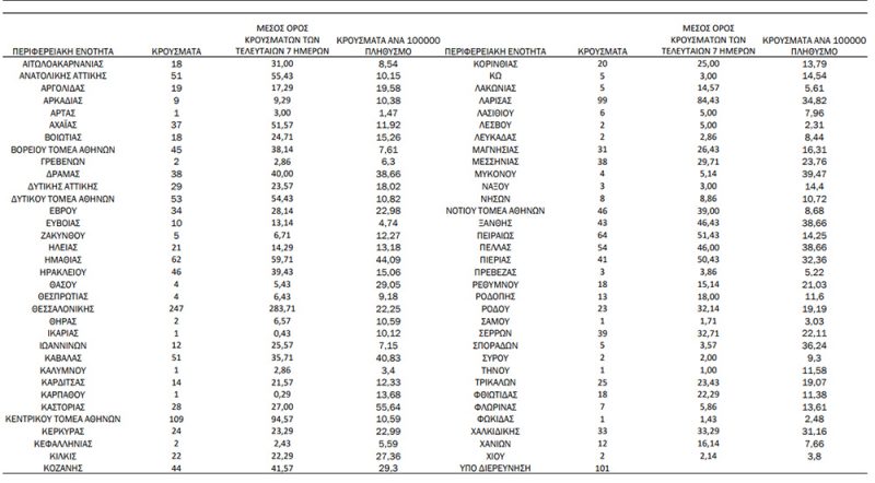 ΕΛΛΑΔΑ • ΚΟΡΩΝΟΪΟΣ - ΣΥΝΕΧΗΣ ΕΝΗΜΕΡΩΣΗ Kορωνοϊός: 1.853 νέα κρούσματα, 16 θάνατοι – Στους 333 οι διασωληνωμένοι (Τα κρούσματα ανά Νομό) 25 Σεπτεμβρίου 2021 16:33 .Coronavirus. Corona virus concept. Italy put mask to fight against Corona virus. Concept of fight against virus Μοιραστείτε αυτό! Facebook Twitter Google Plus Pinterest LinkedIn Ο ΕΟΔΥ ανακοίνωσε 1.853 νέα κρούσματα σήμερα, Σάββατο 25 Σεπτεμβρίου. Παράλληλα ανακοίνωσε πως καταγράφηκαν 333 διασωληνωμένοι στα νοσοκομεία ενώ κατά το τελευταίο 24ωρο και καταγράφηκαν 16 θάνατοι. μπορεί να σου αρέσει επίσης Νομός Χανίων Στα ύψη η βροχόπτωση στα Χανιά από την κακοκαιρία Byron – Πού σημειώθηκαν τα μεγαλύτερα ποσά νερού 5 Δεκεμβρίου 2025 ΔΙΕΘΝΗ • ΚΡΗΤΗ Ποια πόλη της Κρήτης βρίσκεται ανάμεσα στις 20 πιο βρώμικες του κόσμου; 5 Δεκεμβρίου 2025 ΑΓΡΟΤΙΚΑ • ΚΡΗΤΗ Σταύρος Αρναουτάκης: «Η Κρήτη μεγάλη χαμένη της νέας ΚΑΠ. Αναγκαίος ο άμεσος εξορθολογισμός των πόρων» 5 Δεκεμβρίου 2025 Κρήτη: 82 νέα κρούσματα κορωνοϊού – Πόσα καταγράφηκαν ανά Νομό Επιστολή Σαμαρά με καρφιά σε Μητσοτάκη: «Η ΝΔ δεν είναι Ποτάμι» Μοιραστείτε αυτό! Facebook Twitter Google Plus Pinterest LinkedIn ΡΟΗ ΕΙΔΗΣΕΩΝ Νομός Χανίων Στα ύψη η βροχόπτωση στα Χανιά από την κακοκαιρία Byron – Πού σημειώθηκαν τα μεγαλύτερα ποσά νερού 5 Δεκεμβρίου 2025 21:54 ΔΙΕΘΝΗ • ΚΡΗΤΗ Ποια πόλη της Κρήτης βρίσκεται ανάμεσα στις 20 πιο βρώμικες του κόσμου; 5 Δεκεμβρίου 2025 21:49 ΑΓΡΟΤΙΚΑ • ΚΡΗΤΗ Σταύρος Αρναουτάκης: «Η Κρήτη μεγάλη χαμένη της νέας ΚΑΠ. Αναγκαίος ο άμεσος εξορθολογισμός των πόρων» 5 Δεκεμβρίου 2025 18:39 ΕΛΛΑΔΑ • ΕΝΔΙΑΦΕΡΟΝΤΑ Social Media: Πού κάνουν «like» οι Έλληνες; 5 Δεκεμβρίου 2025 18:37 ΚΡΗΤΗ Ώρα για μπριτζ! Οι καλύτεροι αθλητές όλης της Ελλάδας δίνουν ραντεβού στην Κρήτη! 5 Δεκεμβρίου 2025 18:35 ΕΛΛΑΔΑ • ΠΟΛΙΤΙΚΗ Δίκη Βαλυράκη: «Τον χτύπησαν με κοντάρι και τον άφησαν στη θάλασσα», κατέθεσε αυτόπτης μάρτυρας 5 Δεκεμβρίου 2025 18:28 ΠΟΛΙΤΙΚΗ Πολάκης για την παρουσίαση του βιβλίου Τσίπρα: «Έχω υψοφοβία από τα θεωρεία» 5 Δεκεμβρίου 2025 17:16 ΚΡΗΤΗ • ΤΟΥΡΙΣΜΟΣ Κρήτη: Θεαματικές οι προκρατήσεις αλλά κρατούν “μικρό καλάθι” οι τουριστικοί φορείς 5 Δεκεμβρίου 2025 17:13 Δήμος Κισάμου • ΠΑΙΔΕΙΑ - ΕΚΠΑΙΔΕΥΣΗ Κίσαμος: Διαδραστικό εργαστήριο «Ζογκλερικά Αλλιώς» με τον Circus Camino στην Ποταμίδα 5 Δεκεμβρίου 2025 14:19 ΕΛΛΑΔΑ • ΚΡΗΤΗ Νέο Έκτακτο Δελτίο Επιδείνωσης Καιρού – Η εικόνα στην Κρήτη 5 Δεκεμβρίου 2025 13:16 Νομός Χανίων Χανιά: Η Δημοτική Βιβλιοθήκη εκπροσώπησε την Ελλάδα στο διεθνές πρόγραμμα «Βιώσιμες Βιβλιοθήκες» του Goethe-Institut στη Βαρσοβία 5 Δεκεμβρίου 2025 13:10 Νομός Χανίων Χανιά: Χωρίς προβλήματα η κακοκαιρία Byron – Προειδοποίηση για νέα επιδείνωση 5 Δεκεμβρίου 2025 13:09 ΕΛΛΑΔΑ ΓΣEE: Τι ισχύει για τους εργαζόμενους σε συνθήκες κακοκαιρίας 5 Δεκεμβρίου 2025 12:57 ΕΛΛΑΔΑ • ΟΙΚΟΝΟΜΙΑ ΕΛΣΤΑΤ: Στο 2% η ανάπτυξη της ελληνικής οικονομίας κατά το τρίτο τρίμηνο του έτους 5 Δεκεμβρίου 2025 12:43 ΕΛΛΑΔΑ • ΟΙΚΟΝΟΜΙΑ Aνακήρυξη της Πειραιώς ως η «Καλύτερη Τράπεζα στην Ελλάδα» στα Bank of the Year Awards 2025 5 Δεκεμβρίου 2025 12:35 Δημοφιλή αυτή την εβδομάδα