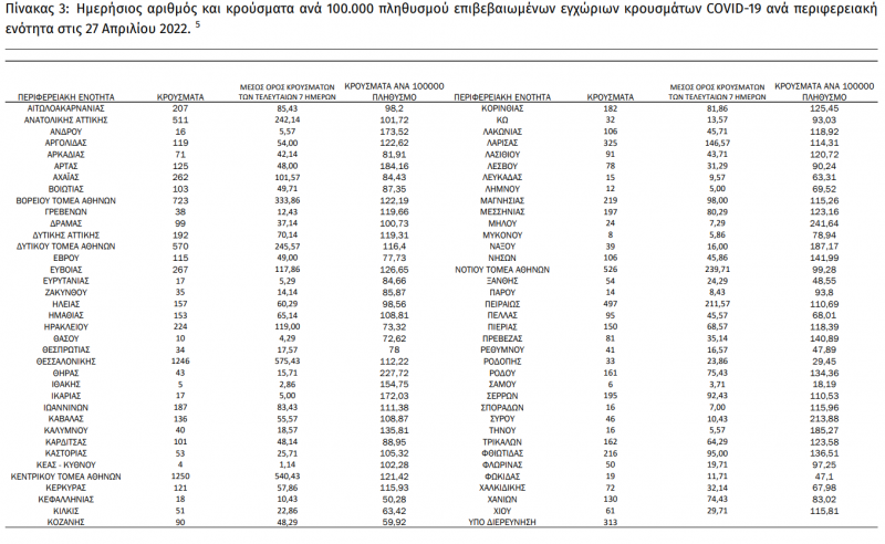 Οι νέοι θάνατοι ασθενών με COVID-19 είναι 43, ενώ από την έναρξη της επιδημίας έχουν καταγραφεί συνολικά 29.022 θάνατοι. Το 95.5% είχε υποκείμενο νόσημα ή/και ηλικία 70 ετών και άνω.