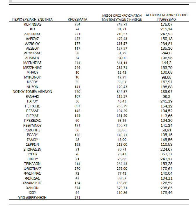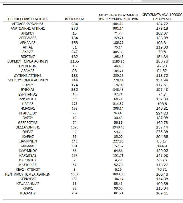 Κορωνοϊός: 16.558 νέα κρούσματα, 56 θάνατοι, 341 οι διασωληνωμένοι (Τα κρούσματα ανά Νομό)