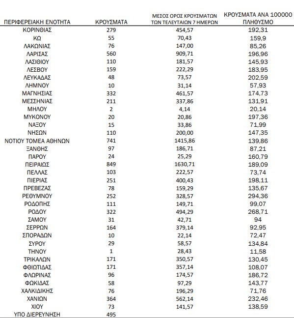 Τα νέα εργαστηριακά επιβεβαιωμένα κρούσματα της νόσου που καταγράφηκαν τις τελευταίες 24 ώρες είναι 18.592, εκ των οποίων 97 εντοπίστηκαν κατόπιν ελέγχων στις πύλες εισόδου της χώρας.