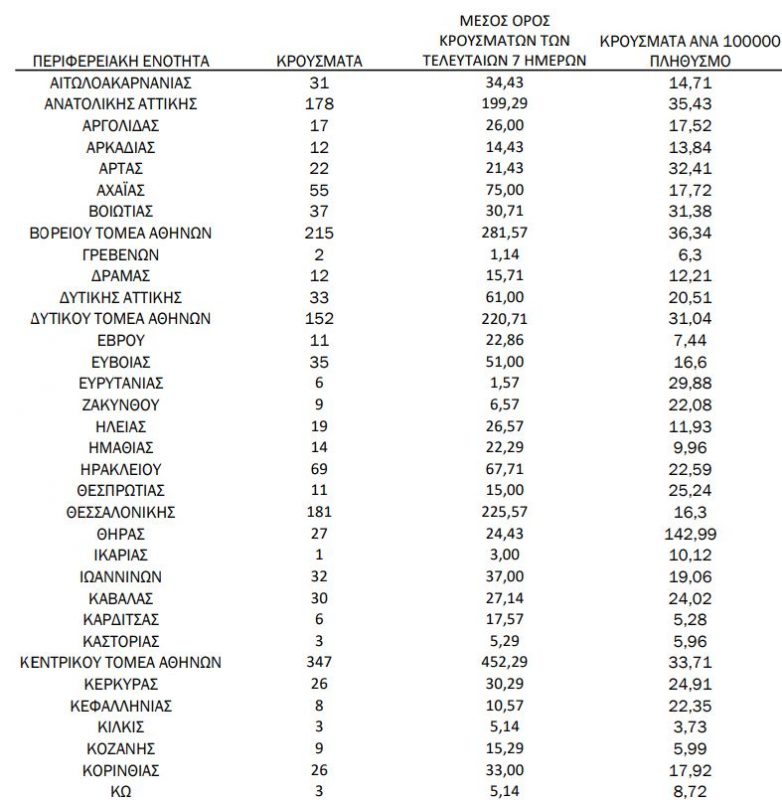 Κατά το ίδιο διάστημα, κατεγράφηκαν 21 θάνατοι. Παράλληλα, σε 151 ανέρχονται οι διασωληνωμένοι ασθενείς στις Μονάδες Εντατικής Θεραπείας.
