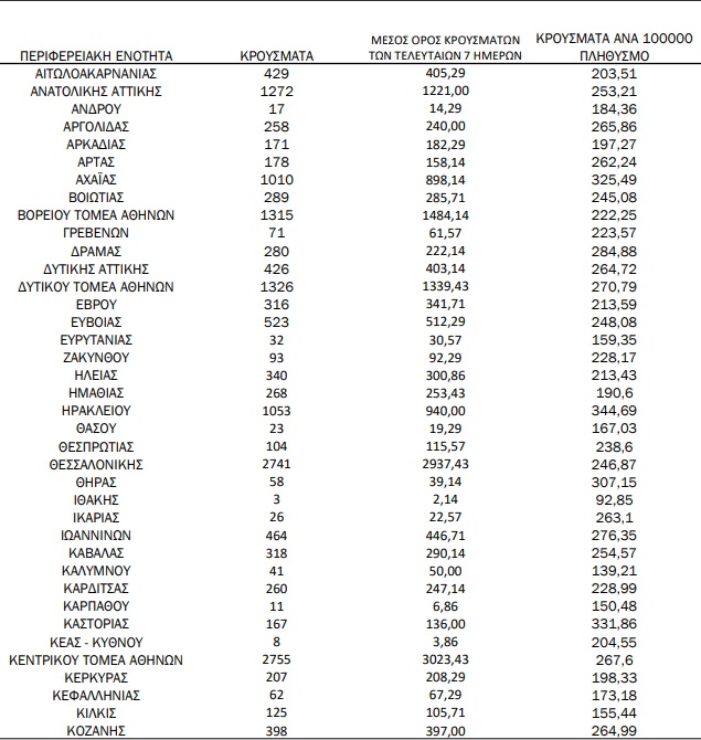 ΕΛΛΑΔΑ • ΚΟΡΩΝΟΪΟΣ - ΣΥΝΕΧΗΣ ΕΝΗΜΕΡΩΣΗ Κορωνοϊός: 27.766 νέα κρούσματα – Στους 654 οι διασωληνωμένοι, 85 νέοι θάνατοι (Τα κρούσματα ανά Νομό) 10 Ιανουαρίου 2022 17:44 .Coronavirus. Corona virus concept. Italy put mask to fight against Corona virus. Concept of fight against virus Μοιραστείτε αυτό! Facebook Twitter Google Plus Pinterest LinkedIn O ΕΟΔΥ ανακοίνωσε σήμερα (10/1) 27.766 κρούσματα κορωνοϊού στην Ελλάδα. Η χώρα μετρά 85 νέους θανάτους, ενώ 654 είναι οι διασωληνωμένοι στις Μονάδες Εντατικής Θεραπείας. Τα κρούσμτα ανά Νομό: μπορεί να σου αρέσει επίσης Δήμος Κισάμου • ΠΑΙΔΕΙΑ - ΕΚΠΑΙΔΕΥΣΗ Κίσαμος: Διαδραστικό εργαστήριο «Ζογκλερικά Αλλιώς» με τον Circus Camino στην Ποταμίδα 5 Δεκεμβρίου 2025 ΕΛΛΑΔΑ • ΚΡΗΤΗ Νέο Έκτακτο Δελτίο Επιδείνωσης Καιρού – Η εικόνα στην Κρήτη 5 Δεκεμβρίου 2025 Νομός Χανίων Χανιά: Η Δημοτική Βιβλιοθήκη εκπροσώπησε την Ελλάδα στο διεθνές πρόγραμμα «Βιώσιμες Βιβλιοθήκες» του Goethe-Institut στη Βαρσοβία 5 Δεκεμβρίου 2025 Κρήτη: 60 αστυνομικοί θετικοί στον κορωνοϊό – 1.634 στην επικράτεια Θεραπεία με ελληνική σφραγίδα για τον κορωνοϊό! Πήρε έγκριση από τον ΕΜΑ και χορηγείται στα νοσοκομεία Μοιραστείτε αυτό! Facebook Twitter Google Plus Pinterest LinkedIn ΡΟΗ ΕΙΔΗΣΕΩΝ Δήμος Κισάμου • ΠΑΙΔΕΙΑ - ΕΚΠΑΙΔΕΥΣΗ Κίσαμος: Διαδραστικό εργαστήριο «Ζογκλερικά Αλλιώς» με τον Circus Camino στην Ποταμίδα 5 Δεκεμβρίου 2025 14:19 ΕΛΛΑΔΑ • ΚΡΗΤΗ Νέο Έκτακτο Δελτίο Επιδείνωσης Καιρού – Η εικόνα στην Κρήτη 5 Δεκεμβρίου 2025 13:16 Νομός Χανίων Χανιά: Η Δημοτική Βιβλιοθήκη εκπροσώπησε την Ελλάδα στο διεθνές πρόγραμμα «Βιώσιμες Βιβλιοθήκες» του Goethe-Institut στη Βαρσοβία 5 Δεκεμβρίου 2025 13:10 Νομός Χανίων Χανιά: Χωρίς προβλήματα η κακοκαιρία Byron – Προειδοποίηση για νέα επιδείνωση 5 Δεκεμβρίου 2025 13:09 ΕΛΛΑΔΑ ΓΣEE: Τι ισχύει για τους εργαζόμενους σε συνθήκες κακοκαιρίας 5 Δεκεμβρίου 2025 12:57 ΕΛΛΑΔΑ • ΟΙΚΟΝΟΜΙΑ ΕΛΣΤΑΤ: Στο 2% η ανάπτυξη της ελληνικής οικονομίας κατά το τρίτο τρίμηνο του έτους 5 Δεκεμβρίου 2025 12:43 ΕΛΛΑΔΑ • ΟΙΚΟΝΟΜΙΑ Aνακήρυξη της Πειραιώς ως η «Καλύτερη Τράπεζα στην Ελλάδα» στα Bank of the Year Awards 2025 5 Δεκεμβρίου 2025 12:35 ΚΡΗΤΗ Kρήτη: Δε στάθηκε εμπόδιο η βροχή στο συλλαλητήριο των συνταξιούχων 5 Δεκεμβρίου 2025 12:28 ΑΓΡΟΤΙΚΑ • ΚΡΗΤΗ Kρήτη: Κλειστά τη Δευτέρα λιμάνια, αεροδρόμια και δημόσιες υπηρεσίες μετά την ακύρωση της συνάντησης με τον Κωστή Χατζηδάκη 5 Δεκεμβρίου 2025 12:10 ΕΝΔΙΑΦΕΡΟΝΤΑ Oι ιδανικές ώρες για να αερίσουμε το σπίτι το Χειμώνα – Ποιες πρέπει να αποφεύγουμε 5 Δεκεμβρίου 2025 11:51 ΑΘΛΗΤΙΚΑ Μουντιάλ: Απόψε η κλήρωση των ομίλων της τελικής φάσης – Πότε ξεκινάει 5 Δεκεμβρίου 2025 11:35 ΚΡΗΤΗ Kρήτη: Νέες προσλήψεις ψυχιάτρων – Ανακοινώθηκαν 19 θέσεις στην 7η ΥΠΕ 5 Δεκεμβρίου 2025 11:01 ΑΘΛΗΤΙΚΑ Euroleague: Αναβλήθηκε το πολυαναμενόμενο χθεσινό ματς Ολυμπιακός-Φενερμπαχτσέ λόγω κακοκαιρίας 5 Δεκεμβρίου 2025 10:34 ΚΡΗΤΗ Kρήτη: Στο εδώλιο σήμερα το ζευγάρι για την κακοποίηση των 8 παιδιών τους – Οι κατηγορίες (βίντεο) 5 Δεκεμβρίου 2025 10:15 ΟΙΚΟΝΟΜΙΑ Επίδομα Θέρμανσης: Τέλος χρόνου για τις αιτήσεις – Κλείνει σήμερα η πλατφόρμα 5 Δεκεμβρίου 2025 09:56 Δημοφιλή αυτή την εβδομάδα