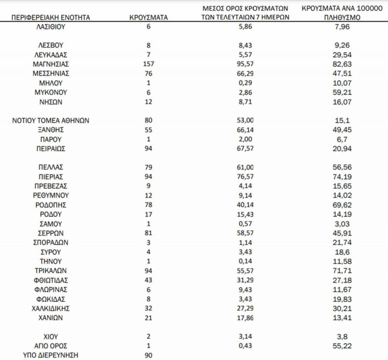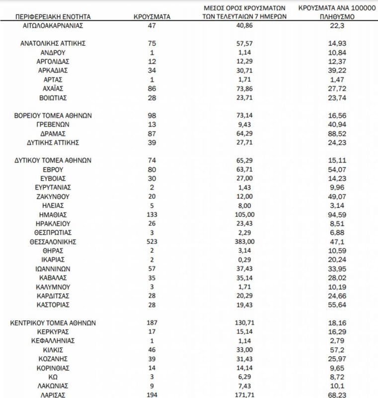 ΕΛΛΑΔΑ • ΚΟΡΩΝΟΪΟΣ - ΣΥΝΕΧΗΣ ΕΝΗΜΕΡΩΣΗ Κορωνοϊός: 3.279 κρούσματα σήμερα – Στους 351 οι διασωληνωμένοι, 38 νέοι θάνατοι (Τα κρούσματα ανά Νομό) 20 Οκτωβρίου 2021 17:12 .Coronavirus. Corona virus concept. Italy put mask to fight against Corona virus. Concept of fight against virus Μοιραστείτε αυτό! Facebook Twitter Google Plus Pinterest LinkedIn Ο ΕΟΔΥ ανακοίνωσε σήμερα Τετάρτη (20/10) 3.279 νέα κρούσματα κορωνοϊού, ενώ οι νέοι θάνατοι στην Ελλάδα φτάνουν στους 38. Στους 351 οι διασωληνωμένοι ασθενείς στις Μονάδες Εντατικής Θεραπείας στη χώρα. Τα κρούσματα ανά Νομό: μπορεί να σου αρέσει επίσης ΝΕΟΙ ΟΡΙΖΟΝΤΕΣ • Νομός Χανίων Χανιά: Έφυγε από τη ζωή μετά από θανατηφόρο δυστύχημα αθλητής σε αναπηρικό αμαξίδιο 6 Δεκεμβρίου 2025 ΕΝΔΙΑΦΕΡΟΝΤΑ Τα ζώδια του Σαββάτου 6 Δεκεμβρίου 6 Δεκεμβρίου 2025 ΝΕΟΙ ΟΡΙΖΟΝΤΕΣ • Νομός Χανίων Χανιά: Σεισμική δόνηση το βράδυ της Παρασκευής 6 Δεκεμβρίου 2025 Κρήτη: 65 νέα κρούσματα κορωνοϊού – Τα κρούσματα ανά Νομό Δολοφονία στο Αιγάλεω: Γιος έσφαξε τη μητέρα του Μοιραστείτε αυτό! Facebook Twitter Google Plus Pinterest LinkedIn ΡΟΗ ΕΙΔΗΣΕΩΝ ΝΕΟΙ ΟΡΙΖΟΝΤΕΣ • Νομός Χανίων Χανιά: Έφυγε από τη ζωή μετά από θανατηφόρο δυστύχημα αθλητής σε αναπηρικό αμαξίδιο 6 Δεκεμβρίου 2025 09:58 ΕΝΔΙΑΦΕΡΟΝΤΑ Τα ζώδια του Σαββάτου 6 Δεκεμβρίου 6 Δεκεμβρίου 2025 09:41 ΝΕΟΙ ΟΡΙΖΟΝΤΕΣ • Νομός Χανίων Χανιά: Σεισμική δόνηση το βράδυ της Παρασκευής 6 Δεκεμβρίου 2025 09:34 ΕΝΔΙΑΦΕΡΟΝΤΑ Ποιος συμβολισμός κρύβεται πίσω από το «Χριστουγεννιάτικο καράβι» 6 Δεκεμβρίου 2025 07:33 ΚΡΗΤΗ Κρήτη: Ο καιρός σήμερα Σάββατο 6 Δεκεμβρίου 6 Δεκεμβρίου 2025 07:30 ΑΘΛΗΤΙΚΑ Γ’ Εθνική: Με Χαϊδάρι εκτός έδρας ο Γρανίτης – Το πρόγραμμα της αγωνιστικής 6 Δεκεμβρίου 2025 07:27 ΑΘΛΗΤΙΚΑ Super League 2: Στην Καλλιθέα τα Χανιά – Το πρόγραμμα του Σαββατοκύριακου 6 Δεκεμβρίου 2025 07:24 ΑΘΛΗΤΙΚΑ Super League: To πρόγραμμα των αγώνων του Σαββατοκύριακου 6 Δεκεμβρίου 2025 07:16 ΑΘΛΗΤΙΚΑ Τοπικό Χανίων: Οι αγώνες του Σαββατοκύριακου και στις τρεις Κατηγορίες 6 Δεκεμβρίου 2025 07:12 Γεύση - Ψυχαγωγία Συνταγή: Κοτόπιτα µε μανιτάρια (4 μερίδες) 6 Δεκεμβρίου 2025 07:03 Γεύση - Ψυχαγωγία Το ανέκδοτο τoυ Σαββάτου 6 Δεκεμβρίου 2025 07:00 ΕΝΔΙΑΦΕΡΟΝΤΑ Ποιοι γιορτάζουν σήμερα Σάββατο 6 Δεκεμβρίου 6 Δεκεμβρίου 2025 06:54 Νομός Χανίων Στα ύψη η βροχόπτωση στα Χανιά από την κακοκαιρία Byron – Πού σημειώθηκαν τα μεγαλύτερα ποσά νερού 5 Δεκεμβρίου 2025 21:54 ΔΙΕΘΝΗ • ΚΡΗΤΗ Ποια πόλη της Κρήτης βρίσκεται ανάμεσα στις 20 πιο βρώμικες του κόσμου; 5 Δεκεμβρίου 2025 21:49 ΑΓΡΟΤΙΚΑ • ΚΡΗΤΗ Σταύρος Αρναουτάκης: «Η Κρήτη μεγάλη χαμένη της νέας ΚΑΠ. Αναγκαίος ο άμεσος εξορθολογισμός των πόρων» 5 Δεκεμβρίου 2025 18:39 Δημοφιλή αυτή την εβδομάδα